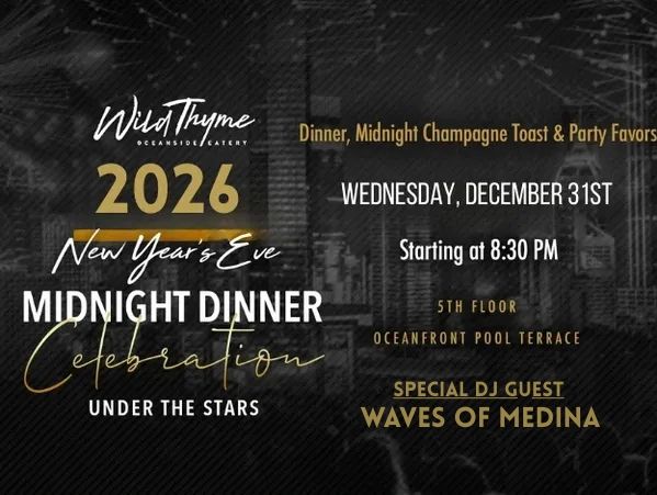 Looking for a 3-course dinner before you ring in 2026 with friends and family elsewhere? This is the perfect option for an oceanfront dinner on the 1st floor of The Atlantic Hotel & Spa at Wild Thyme Oceanside eatery!
